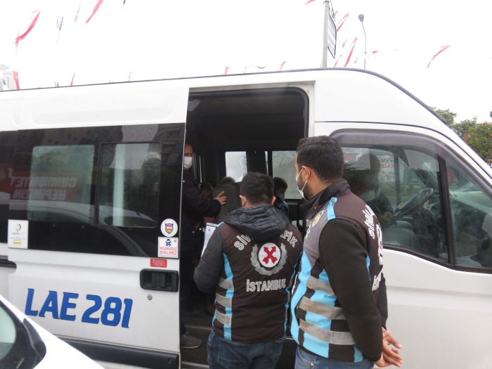 Sarıyer İTÜ Büyükdere Caddesi önünde yapılan denetimlerde servis araçları tek tek durduruldu. Servislerde öğrenci ve servis görevlilerine koronavirüs bilgilendirmesi yapıldı. Servis araçlarında dezenfektan olup olmadığı kontrol edildi. Servis şoförlerinin evrakları kontrol edilerek Genel Bilgi Taraması (GBT) yapıldı. Evraklarında eksik bulunan şoförlere ceza uygulandı.
