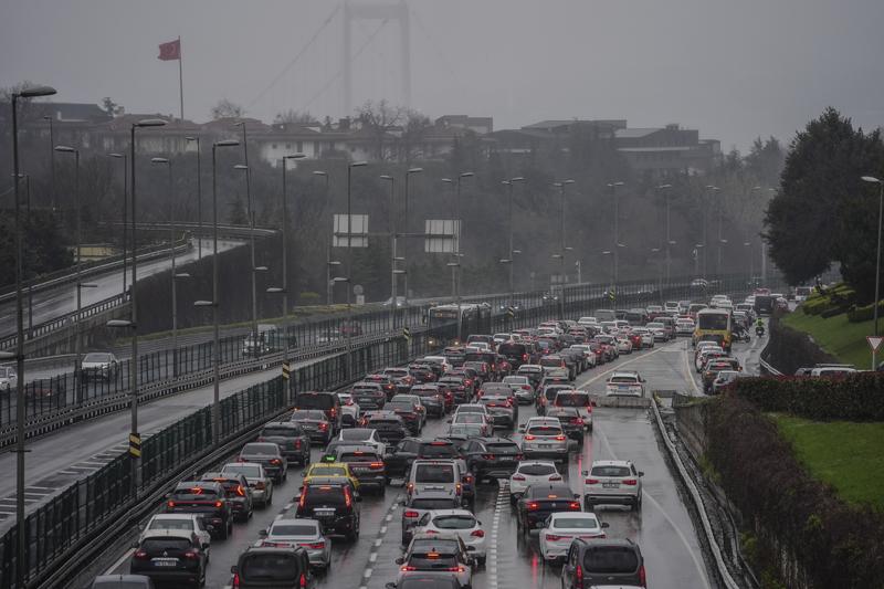Ramazan Bayramı'nın ikinci gününde yağmurun da etkisini göstermesiyle birlikte İstanbul'da trafik yoğunluğu yaşanıyor. İstanbul Büyükşehir Belediyesi Trafik Yoğunluğu Haritası verilerine göre, trafik yoğunluğu saat 13:28 itibarıyla yüzde 62'ye ulaştı. Öğle saatlerinde Hacıoğlu E-5 Ankara istikametinde her uzun araç kuyrukları oluştu.
