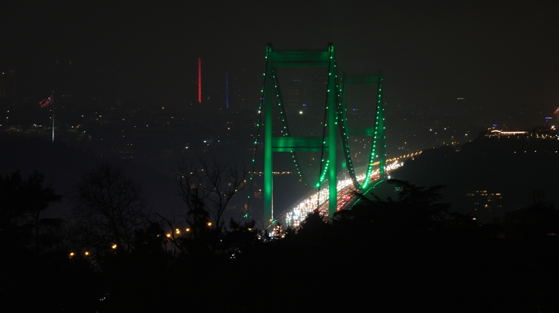 Her iki köprüdeki aydınlatmanın sabaha kadar devam edeceği öğrenildi.