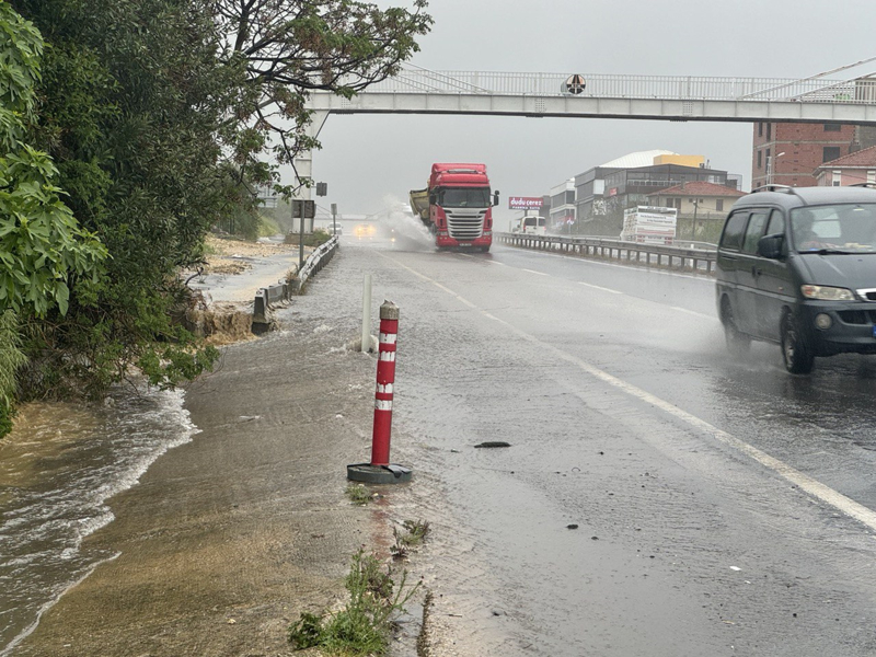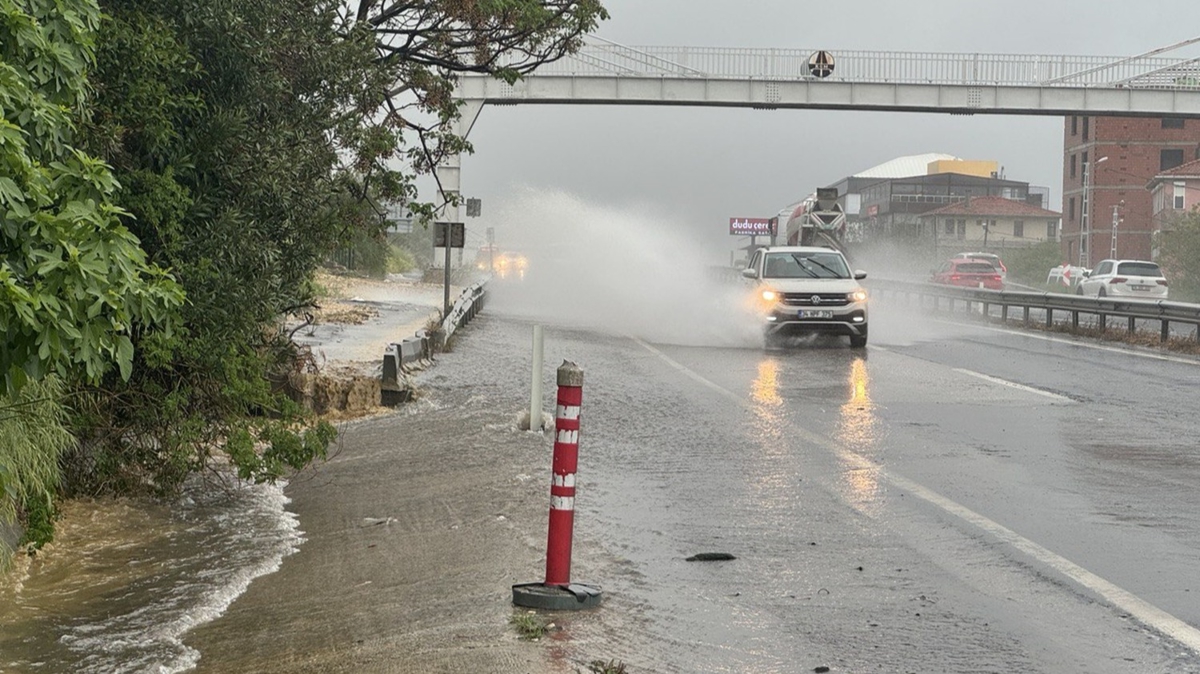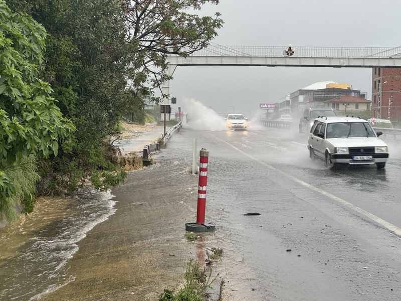 Kuvvetli yağış, D-100 kara yolu Güzelşehir mevkisi Kumburgaz istikametinde su birikintileri oluşturdu.