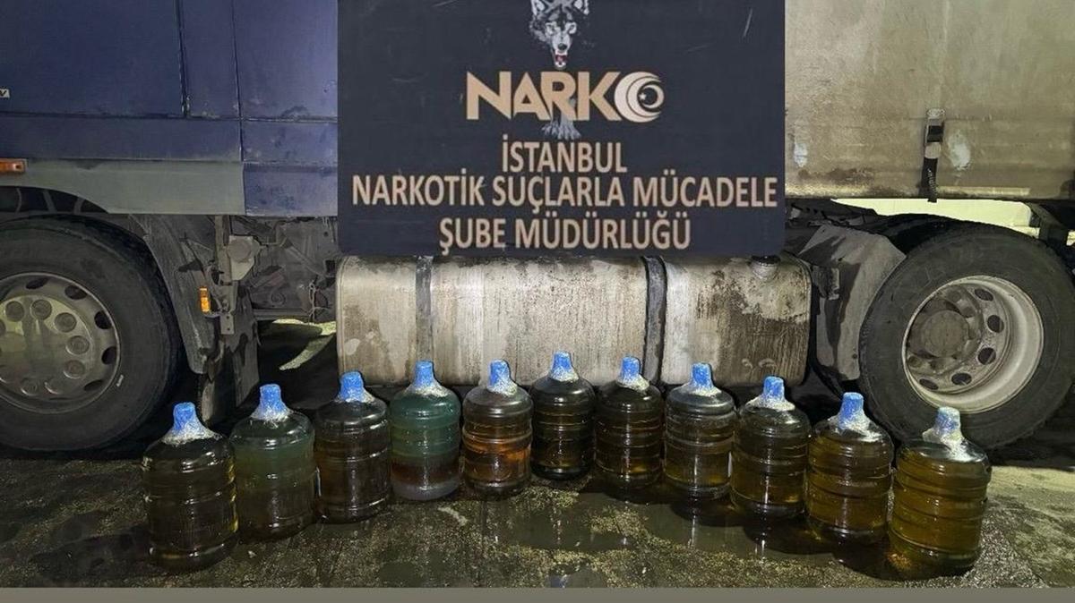 Operasyonda tırda damacanalar içerisinde 183 litre uyuşturucu madde ile 16 bin 485 lira ele geçirildi.