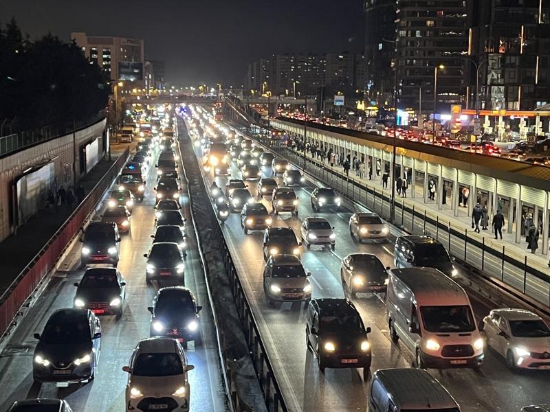 İstanbul'da haftanın son iş gününde yağışın da etkisiyle akşam saatlerinde trafik yoğunluğu yüzde 85'e ulaştı. Öte yandan, kentteki toplu taşıma durakları ile aktarma merkezlerinde yolcu yoğunluğu oluştu.