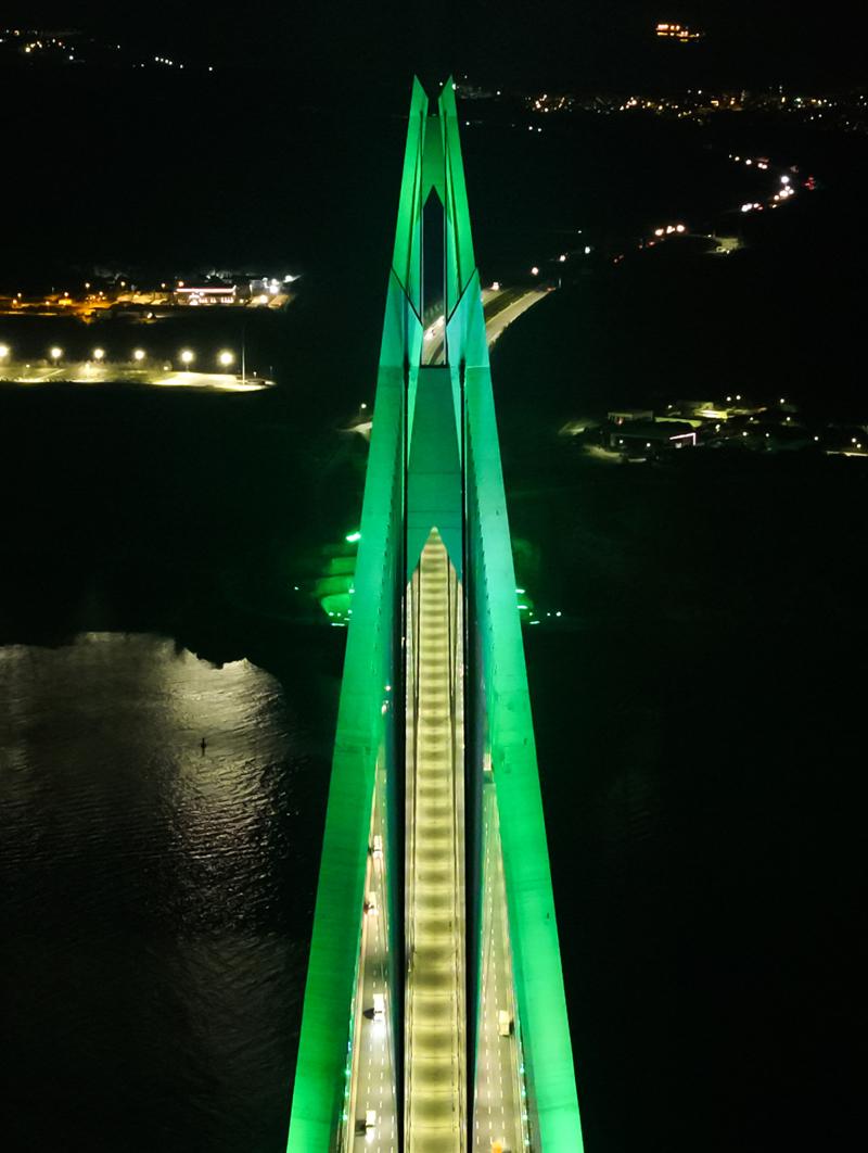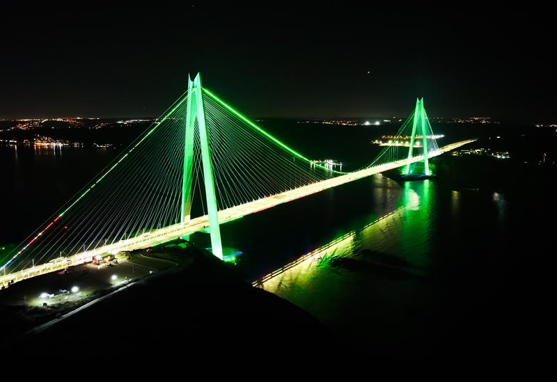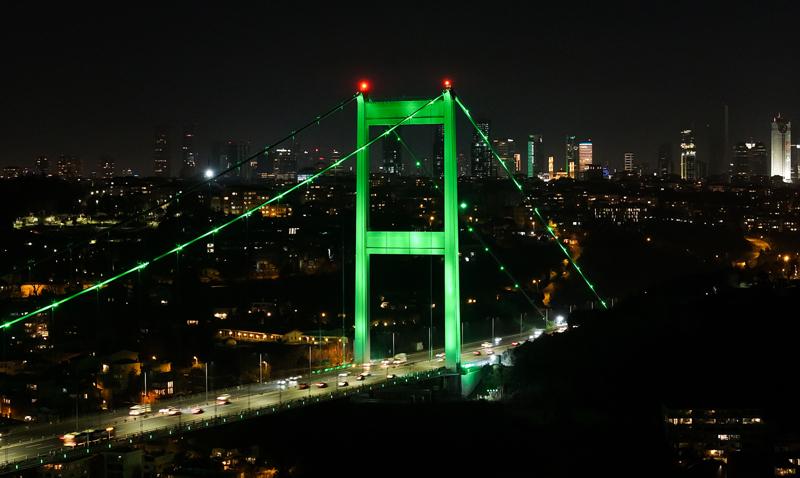 Bu kapsamda İstanbul'daki 2 köprü yeşil ışıkla aydınlatıldı.
