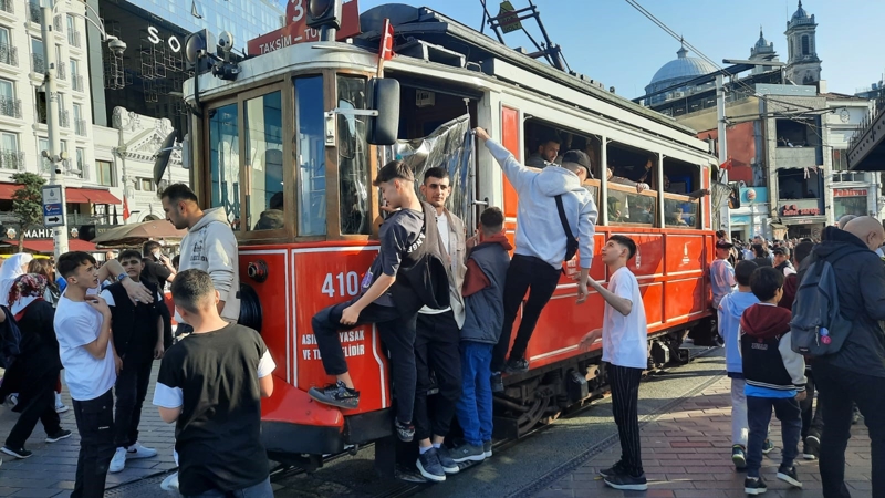 9 günlük Ramazan Bayramı tatili devam ederken İstanbul'un turistik ve tarihi bölgelerinde yoğunluk yaşanıyor. Bayram tatilini İstanbul'da geçiren vatandaşlar güzel havayı fırsat bilerek kendini sokağa attı. İstiklal Caddesi üzerinde ziyaretçileri taşıyan ve yoğun ilgi gören nostaljik tramvay seferleri yaşanan yoğunluk ve yayaların güvenliği nedeniyle geçici süreliğine iptal edildi.