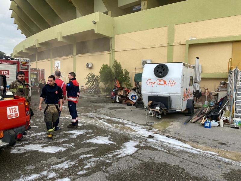 İzmir Atatürk Stadyumu'nun altındaki karate salonunda, saat 13.30 sıralarında yangın çıktı.