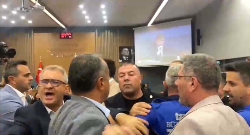 'Gezi vandallığı' sözünün ardından mecliste sesler yükseldi ve CHP'li üyeler, ayağa kalkarak karşılık verdi. Büyüyen tartışma iki grup arasında arbedeye dönüştü. Tugay, oturuma 5 dakika ara verdi.İzmir Büyükşehir Belediyesi meclis toplantısında arbede! ''Gezi'' gerçeğini duymak zorlarına gitti pic.twitter.com/ehuLUB6bfg