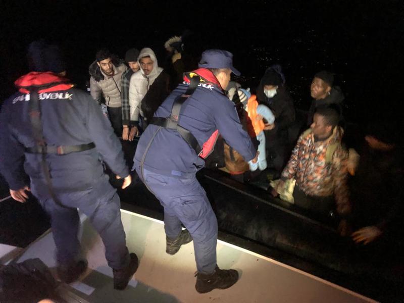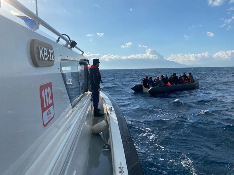 Ekipler, Yunanistan unsurlarınca Türk kara sularına itilen ve yardım talebinde bulunan lastik bot ve can sallarındaki 104 düzensiz göçmeni kurtardı.