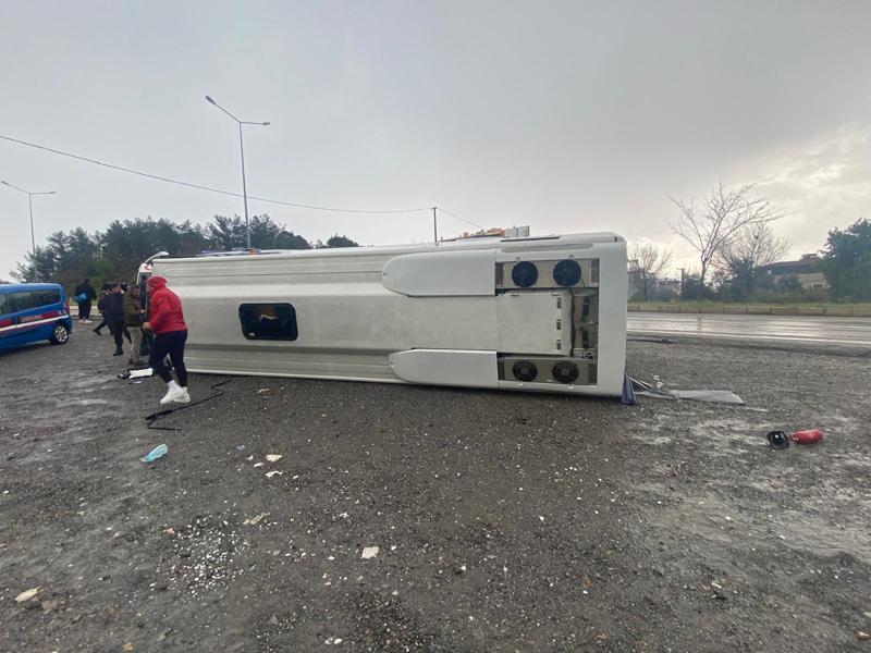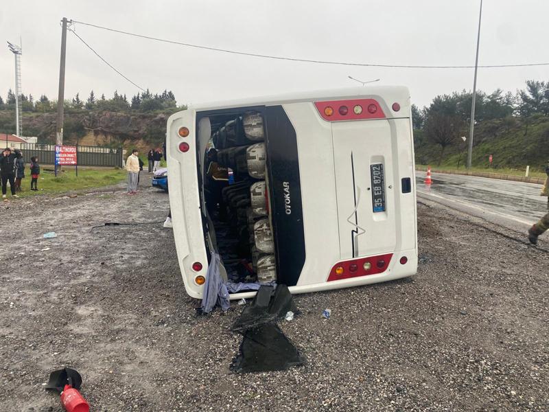 İzmir 1. Amatör Ligi ekiplerinden Narlıdere Belediye Gençlik ve Spor futbol takımı oyuncularını taşıyan ve sürücüsünün kimliği öğrenilemeyen Narlıdere Belediyesine ait, 35 EB 8702 plakalı midibüs, Mersinalanı Mahallesi'ndeki Şehit Osman Koç Stadı'na giriş yaptığı sırada yağış nedeniyle kayganlaşan yolda devrildi.