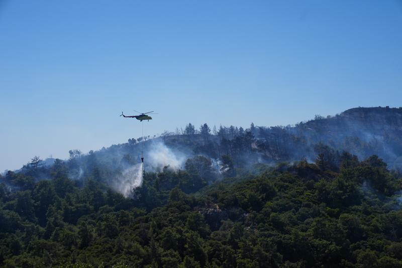 Ekipler, havadan ve karadan müdahaleyle yangını kontrol altına aldı.