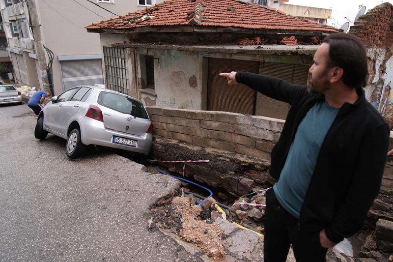 Bayraklı ilçesi 1639 Sokak'ta, kazı yapılan yol için dökülen mıcırların yağış nedeniyle taşınması sonucu çukur oluştu. Yolda park halindeki bir otomobil çukur nedeniyle yan yattı, hafif hasar gördü.