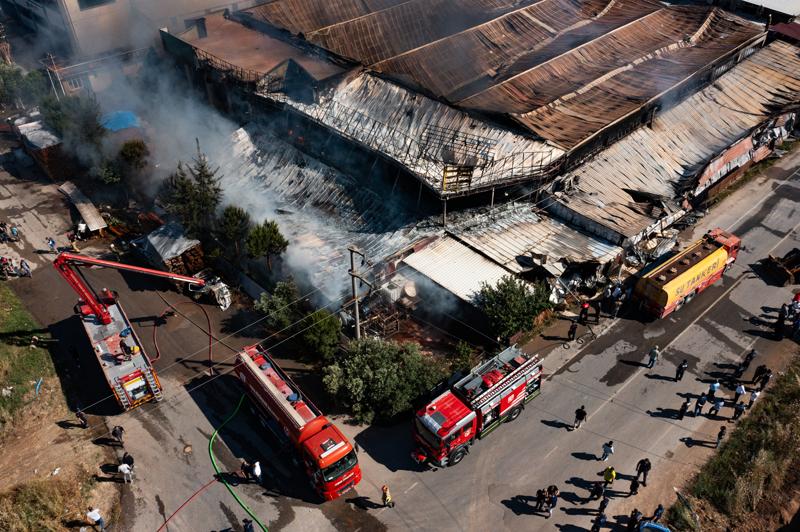 Yangında dumandan etkilenen 2 işçiye ambulansta müdahale edildi.
