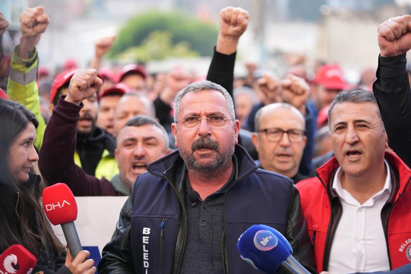 Belediye-İş İzmir 2 No'lu Şube Başkanı Savaş Atalay, sendika binası önünde gazetecilere, maaşların eksik ödenmesiyle işçilerin borç yükü altında kaldığını ve çaresizliğe itildiğini söyledi.
