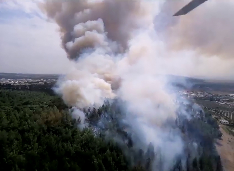 Bölgeye, Orman Bölge Müdürlüğü bünyesindeki 5 uçak, 8 helikopter, 21 arazöz, 8 su ikmal aracı ile 6 dozer yönlendirildi.