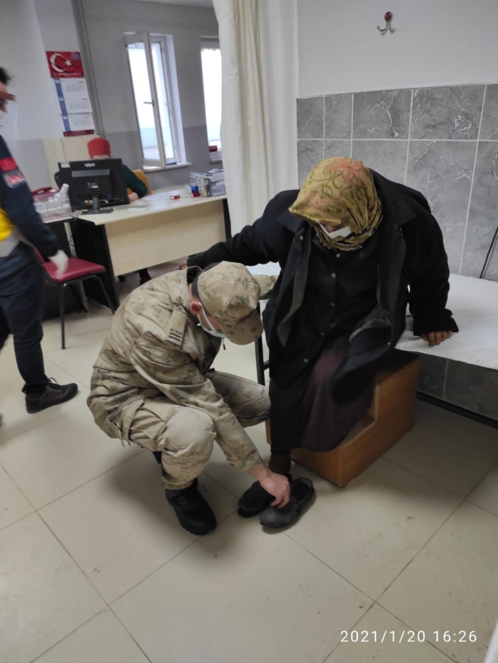 ;İlçeye bağlı Kurtulmuş köyü Gökçebel Mahallesi'nde kontrollerde bulunan jandarma ekipleri, G.A'nın, çetin kış şartları ve kar yağışının etkili olduğu bölgede ahşap barakada tek başına yaşadığını tespit etti. Sağlık durumu ve temel ihtiyaçları için harekete geçen ekipler, yaşlı kadını karlı fındık bahçesi içerisinden köy yoluna kadar sırtında taşıyarak jandarma aracına ulaştırdı. Dereli Devlet Hastanesi'ne götürülerek muayenesi yaptırılan G.A'nın temel ihtiyaçları da karşılandı. Yaşlı kadın daha sonra kent merkezinde oturan diğer aile yakınlarına teslim edildi.