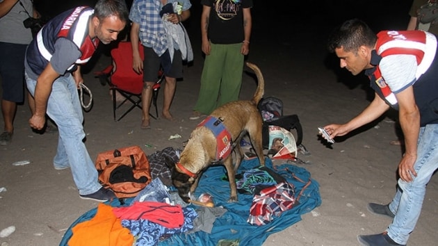 Narkotik dedektör köpeklerle plaja giren jandarma ekipleri, tatilcilerin üzerini ve çantalarını aradı. Dedektör köpeklerin tepki verdiği şahıs ve alanlar üzerinde yoğunlaşan jandarma ekipleri, plajda bir tatilcinin çantasında az miktarda esrar maddesi ele geçirdi.
