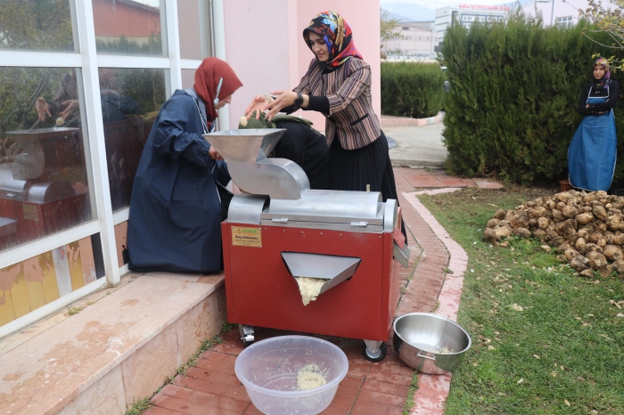 Bölgede üretilen pancarları, bazı işlemlerden geçirdikten sonra pekmez elde eden kadınlar, yeni ürettikleri ürünle gelir sağlıyor.