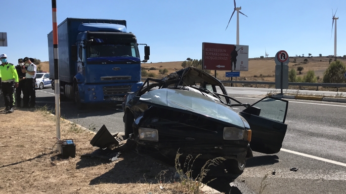 Ahmet Yılmaz'ın (73) kullandığı 64 AS 717 plakalı otomobil, Dumlupınar Kavşağı'ndan dönüş yaptığı sırada Banaz istikametine seyreden İbrahim C. (44) idaresindeki 45 RU 414 plakalı kamyonla çarpıştı.