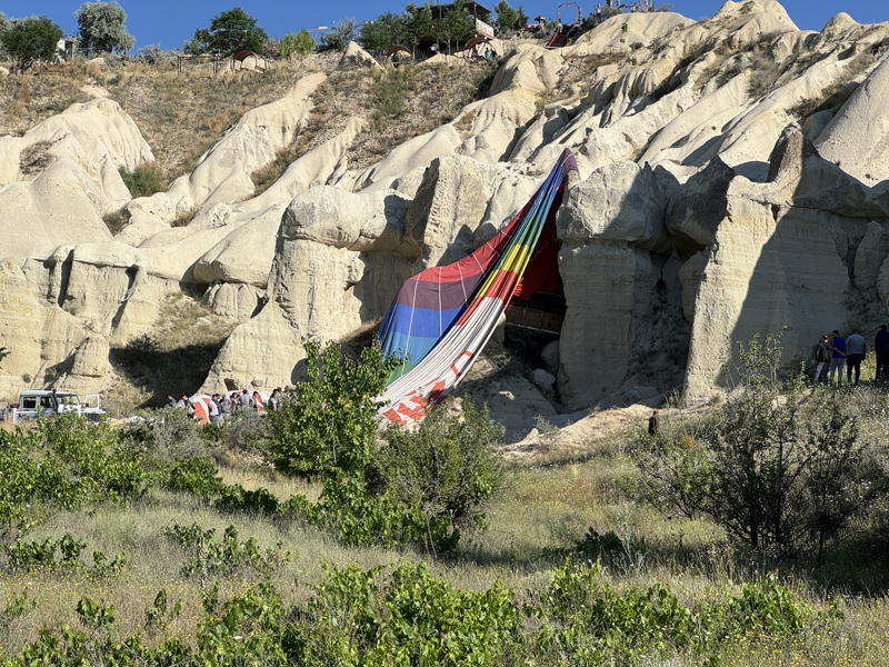 Ters rüzgara rağmen emniyetli şekilde iniş gerçekleştirdiklerini dile getiren Uzun, "Paşabağı bölgesinde saat 05.20'de kalkış yaptık. Çavuşin harabeleri, Zelve Açık Hava Müzesi'nin üzerinde gezip Aşk Vadisi içinde turumuzu tamamladık. Daha sonra Aşk Vadisi karşısına iniş planladık. O anda ters bir rüzgar geldi. Kayalara sürterek iniş yaptık. Hiçbir misafirimizde yaralanma veya herhangi bir sıkıntı yok. Hepsi otellerine geçti." diye konuştu.
