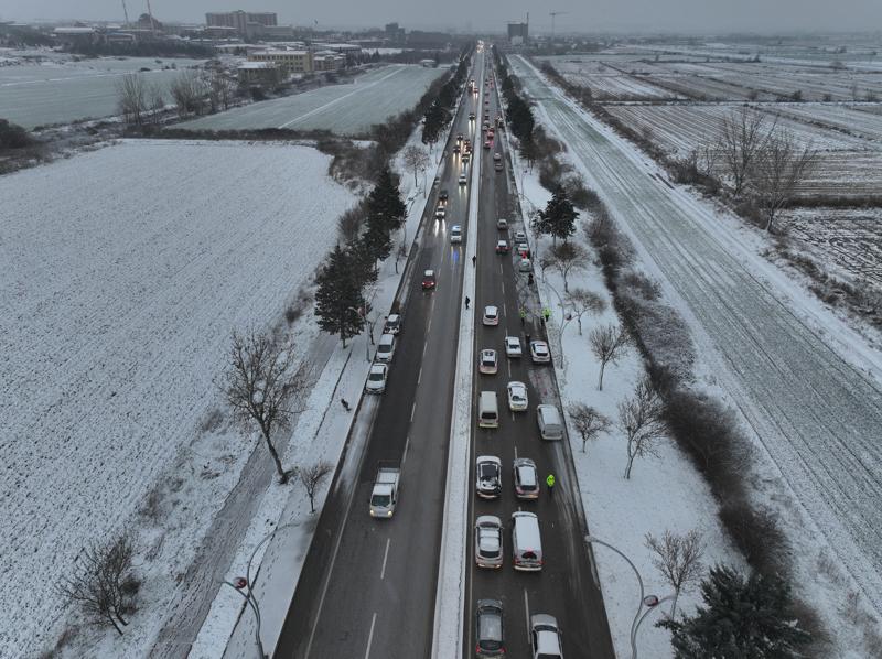 Polis ekipleri, bölgede önlem alırken araçlar yoldan kaldırılana kadar trafik akışı tek şeritten sağlandı.