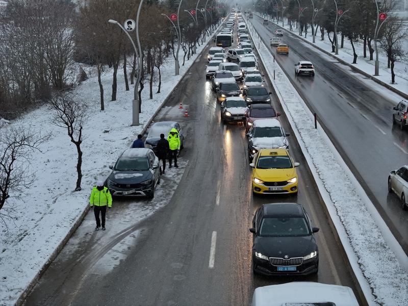 Kentte dün akşam başlayan kar yağışı, aralıklarla etkisini sürdürüyor.