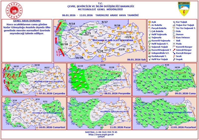 HAVA SICAKLIĞI: Önemli bir değişiklik beklenmiyor. Güneydoğu Anadolu'da mevsim normallerinin altında, diğer yerlerde mevsim normalleri civarında seyredeceği tahmin ediliyor.