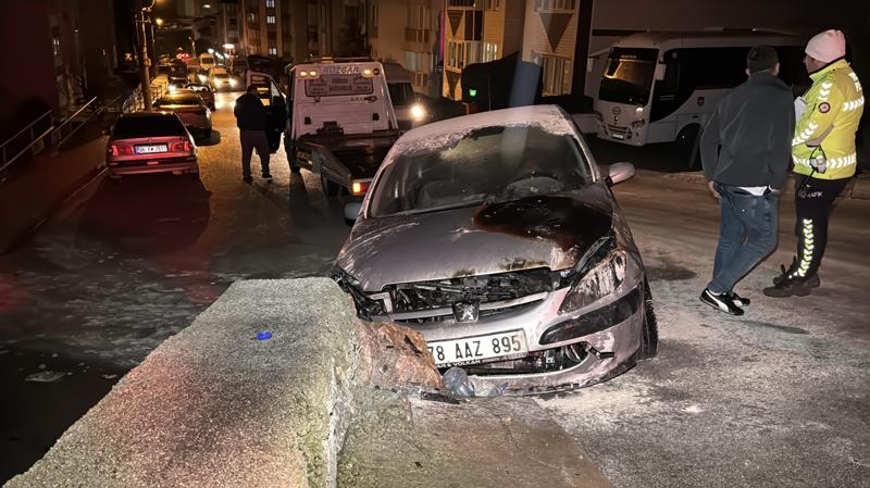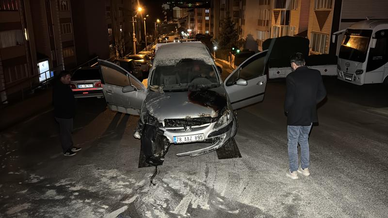 D.A. idaresindeki 78 AAZ 895 plakalı otomobil, 75. Yıl Mahallesi 52. Sokak'ta yol kenarındaki duvara çarptı.