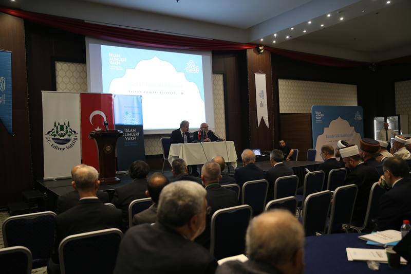 Edirne'de İslam Alimleri Vakfınca Valilik ev sahipliğinde düzenlenen "Kendi Gök Kubbemiz Balkan Alimleri Buluşması-2" programı Prof. Dr. Nasrullah Hacımüftüoğlu yönetimindeki açılış oturumuyla devam etti.