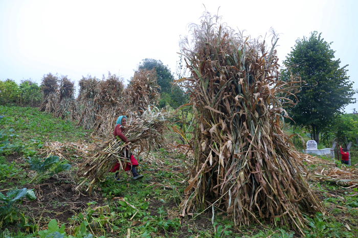 Yaz-kış ellerinden kazmaları, bellerinden orakları, sırtlarından da yünden örülen ve yük taşımada kullanılan arkalıkları (dırmaç) eksik olmayan kadınlar, bugünlerde mısır hasadına yönelik işlerine yoğunlaştı.