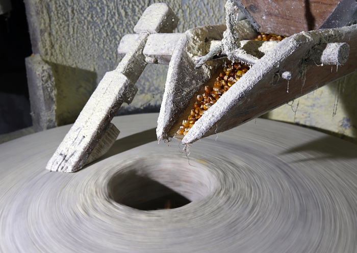 Kadınların yaklaşık 6 aylık emeklerinin ürünü mısır taneleri, son olarak yemeklerde, çorbalarda ve ekmeklerde kullanılmak üzere asırlık su değirmenlerinde öğütülüyor ve un haline getiriliyor.