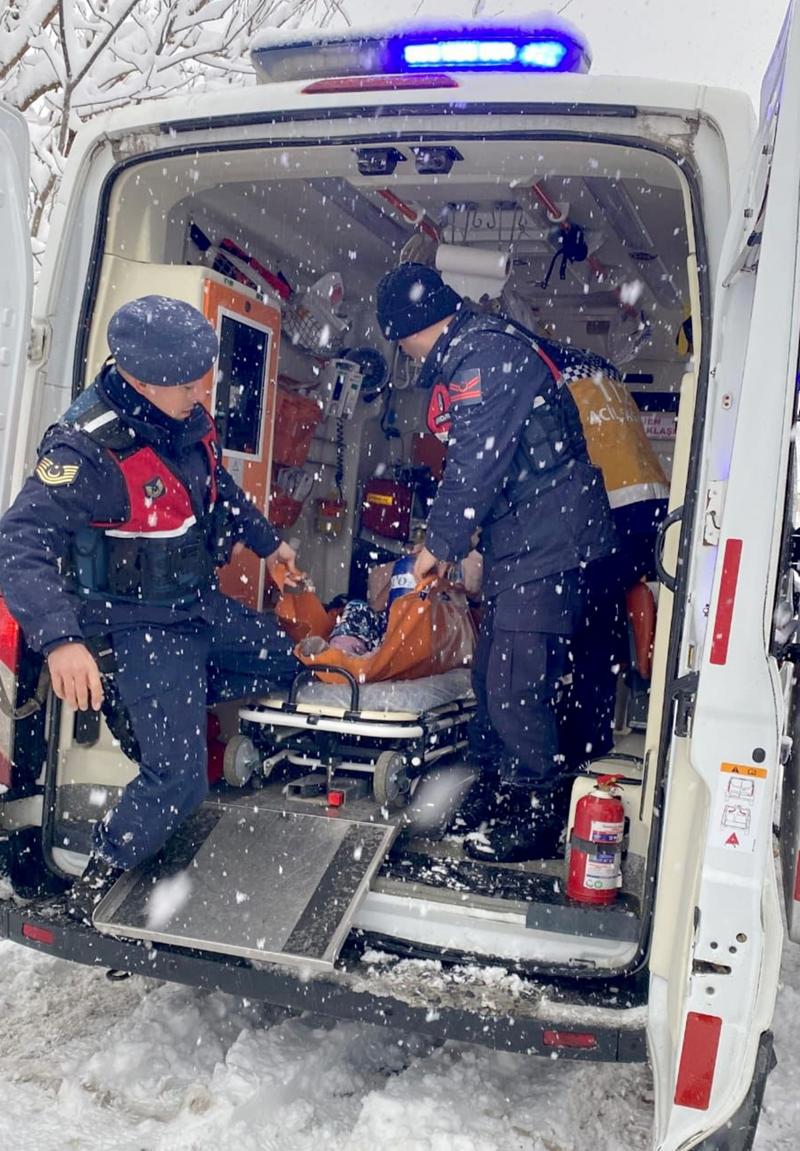 Kar nedeniyle yolu ulaşıma kapanan köye sağlık ve jandarma ekipleri sevk edildi.