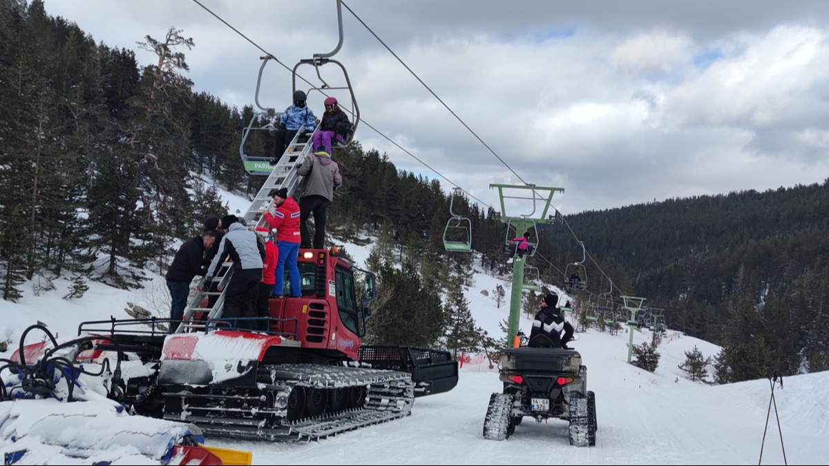 Bu esnada duran telesiyejlerde 67 kişi mahsur kaldı.