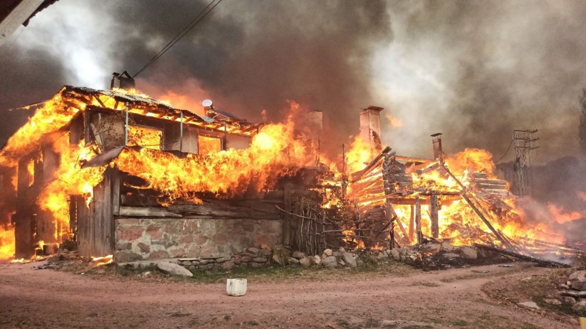 Başka evlere de sıçrayan yangına Orman İşletme Müdürlüğü ve itfaiye ekipleri, köylülerin de yardımıyla müdahale etti.