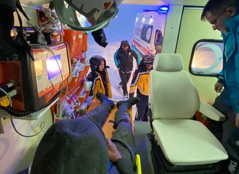 Azdavay ilçesi Alacık Kocağaç Mahallesi'nden 112 Acil Çağrı Merkezine gelen ihbar ile harekete geçen ekipler, zorlu kış şartlarında hastaya ulaştı.