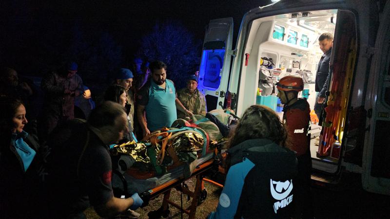 Bölgeye giden ekipler, çelik halatlar yardımıyla kayalıklardan aşağı sarkarak yaralıya ulaştı.