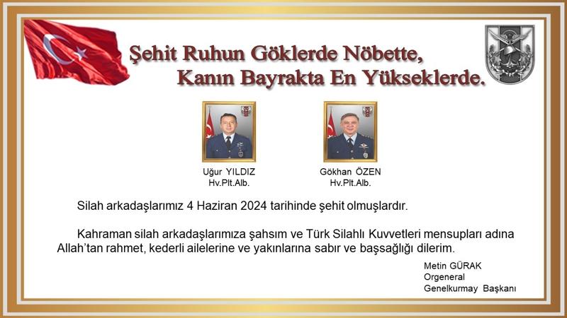 Uçağı kullanan 2 pilotun şehit olduğu açıklandı.