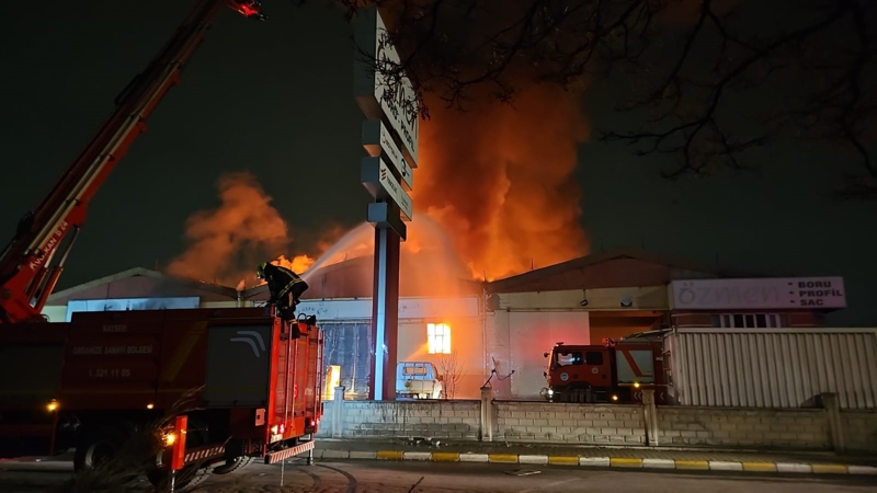 Edinilen bilgiye göre, ilçede bulunan Kayseri Organize Sanayi Bölgesi 24. Cadde üzerindeki bir boru-profil fabrikasında bilinmeyen bir sebepten dolayı yangın çıktı.