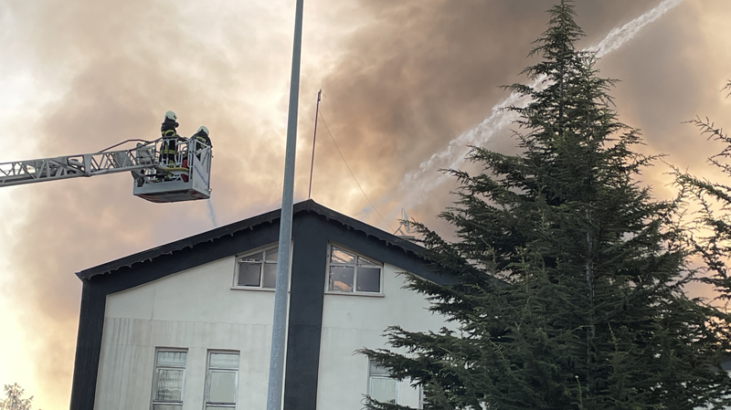 Soğutma çalışmalarının devam ettiği fabrika ve içeride bulunan malzemeler kullanılamaz hale geldi.