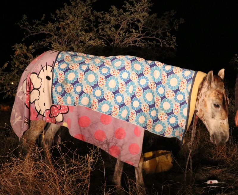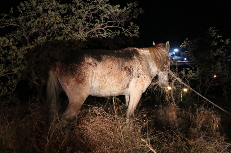 Vücudunun çeşitli yerlerinden yaralanan atın üzerine, vatandaşlar tarafından battaniye örtüldü.