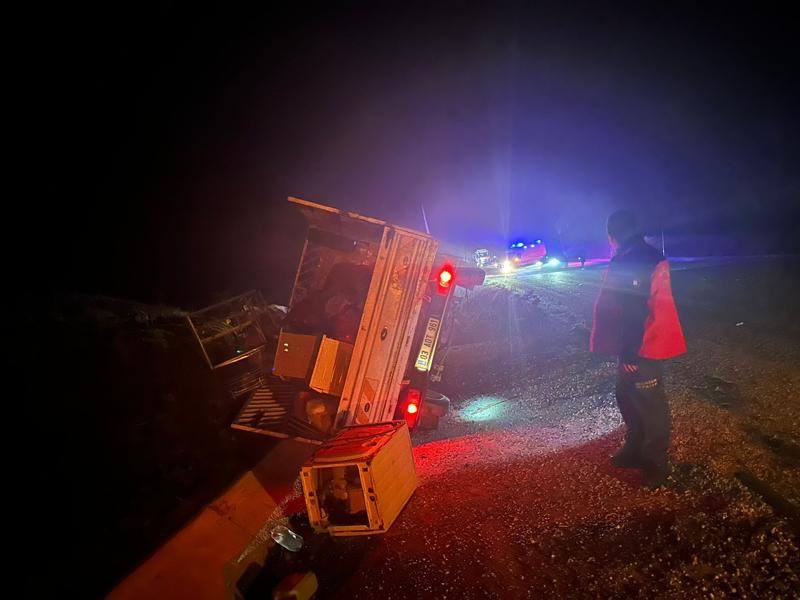 T.B. idaresindeki 03 ADT 961 plakalı kamyonet, Sındırgı-Akhisar yolu Kertil Mahallesi mevkiinde direksiyon hakimiyetini kaybetmesiyle şarampole devrildi.