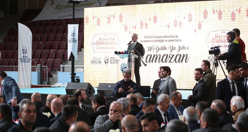 Bakan Uraloğlu, ardından Antakya ilçesindeki Hatay Merkez Spor Salonu'nda düzenlenen "Kardeşlik İftarı"na katıldı.