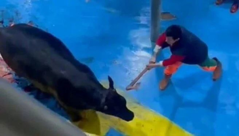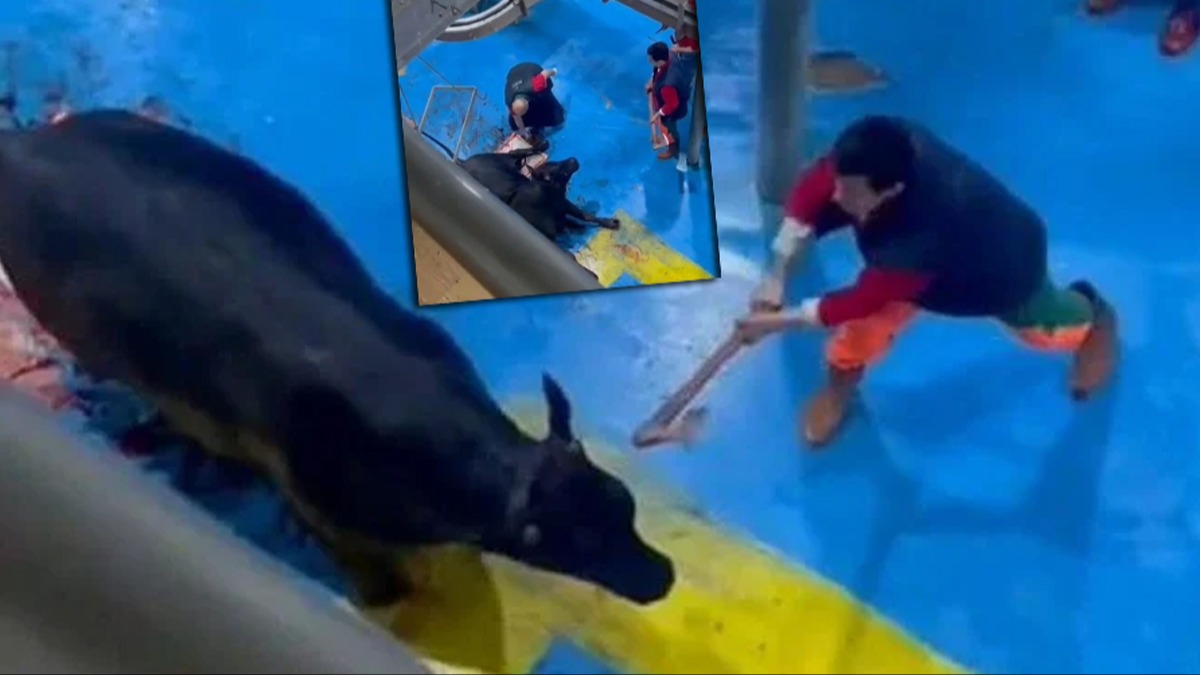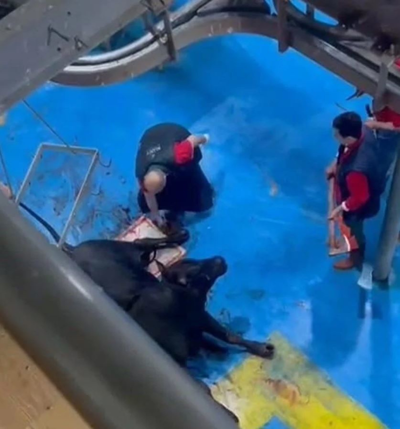 Kentte bulunan et entegre tesisinde kesim sırasında kaçan büyükbaş hayvanı etkisiz hale getirmek isteyen ancak bu sırada hayvana eziyet eden 5 kişinin görüntüleri, sosyal medyada yayımlandı.