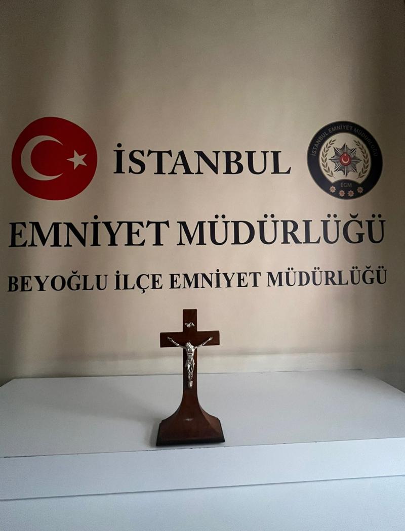 Kilisenin güvenlik kamerası görüntülerini inceleyen polis, şüphelinin haçı aldıktan sonra taksiye binerek Fatih Kemalpaşa Mahallesine gittiğini belirledi.