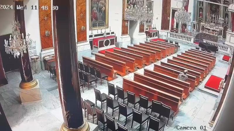 Öte yandan, kilisenin güvenlik kamera kaydında, şüphelinin bir süre kilisede oturduğu, daha sonra haçı alarak kiliseden ayrıldığı görülüyor.