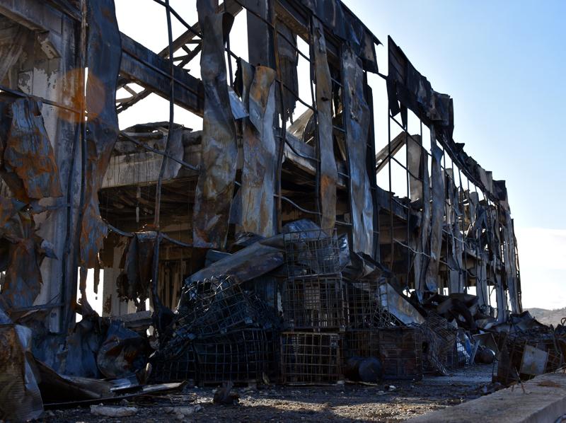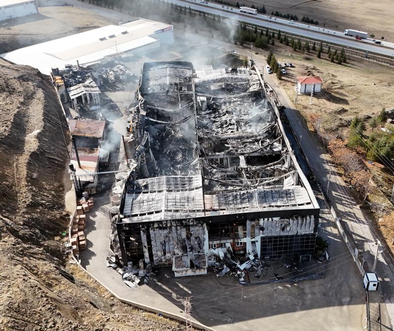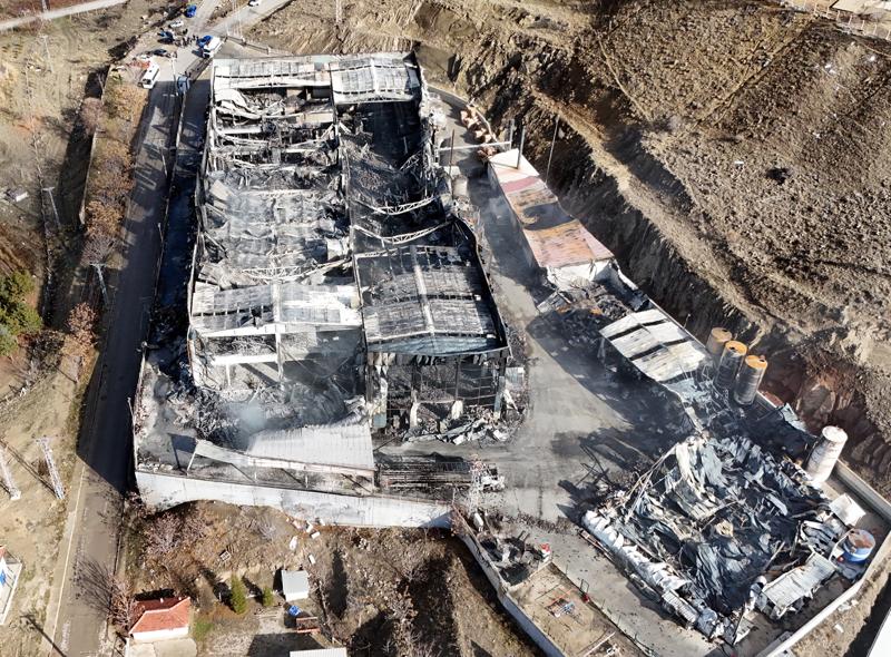 Öte yandan yanan fabrikanın son durumu dronla görüntülendi.