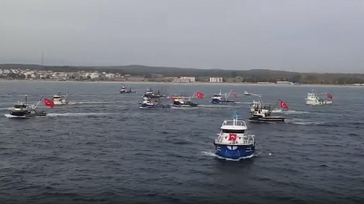 Balıkçı barınağında toplanan İğneada ve Kıyıköylü balıkçılar, teknelerini Türk bayraklarıyla donattı.