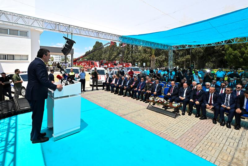 Törende konuşan KKTC Cumhurbaşkanı Tatar, teslim edilen araçların hem güvenlik hem de yangın ile mücadelede KKTC'ye güç katacağını ifade ederek, Türkiye'nin desteğinde uygulamaya geçirilen projelerin, KKTC'nin refahına katkı sağladığını söyledi.