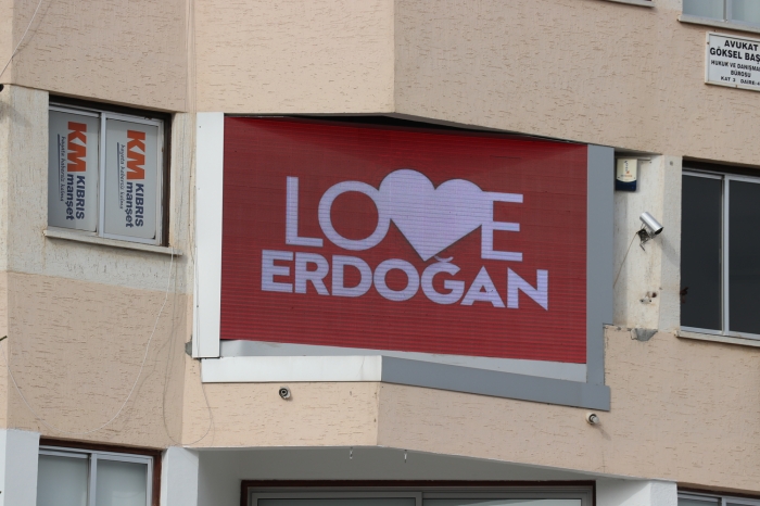 Bu kapsamda, KKTC'de başkent Lefkoşa ve Girne'deki reklam panolarında "Love Erdoğan" görseline yer verildi.