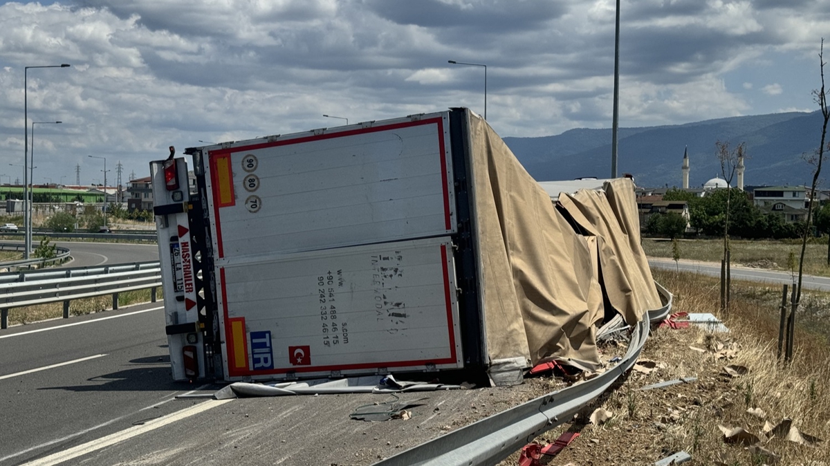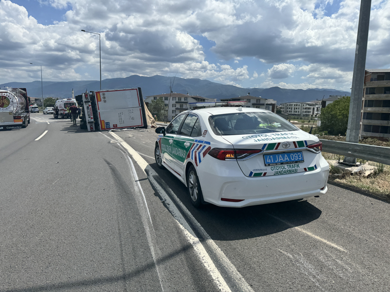 O.U. idaresindeki 26 LD 120 plakalı kağıt yüklü tır, Kuzey Marmara Otoyolu'nun Kartepe mevkii Ankara istikametindeki Anadolu Otoyolu bağlantısında devrildi.