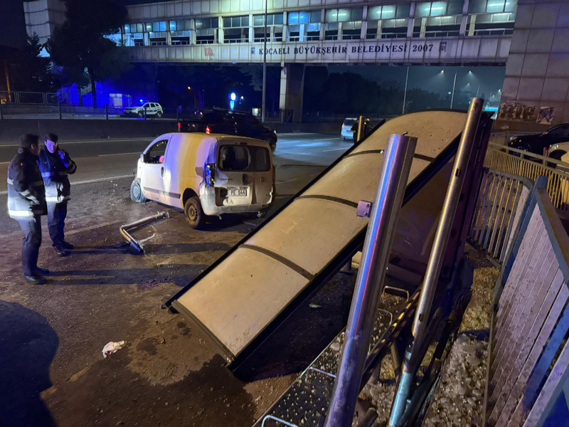 Kaza, gece saatlerinde D-100 kara yolunun İzmit ilçesi Serdar Mahallesi mevkiinde meydana geldi. İstanbul yönüne giden Eyüp İ. idaresindeki 26 PE 544 plakalı hafif ticari araç, sürücüsünün kontrolünden çıkarak yol kenarında kimsenin olmadığı otobüs durağına çarptı. Çarpmanın etkisiyle durak yıkılırken, araç da yola savruldu.