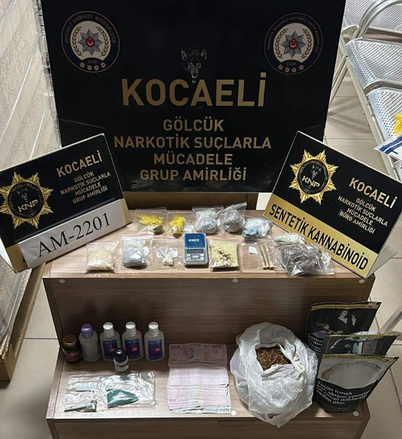 Kocaeli Emniyet Müdürlüğü Narkotik Suçlarla Mücadele Şubesi ekiplerince yürütülen çalışmalarda, şüpheli kişilere ait adreslerde ve araçlarda yapılan aramalarda 247 gram sentetik uyuşturucu, 45 gram metamfetamin, 1 gram esrar, 1 gram kokain, 1 tabanca, 4 fişek, 2 hassas terazi ve 12 bin 900 lira nakit para ele geçirildi.